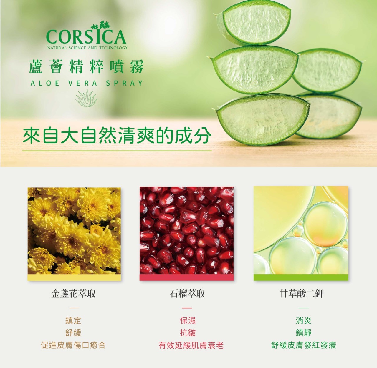 一、蘆薈萃取+植萃成分+清爽保濕