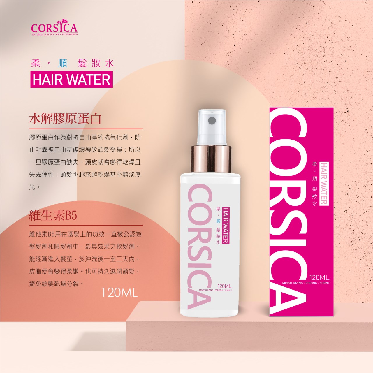 讓您想滋潤髮絲,卻又不想像塗抹上髮油後那樣的油膩感,那麼可以選擇科皙佳CORSICA 柔順 髮妝水。